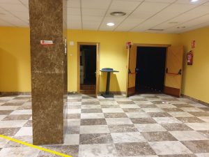 Si resulta imprescindible utilizar dispositivos electrónicos, la sala posee enchufes y distintos conectores. Todo tipo de necesidades técnicas (colgadores, pedestales, televisores, etc.) y de mobiliario pueden cubrirse en la solicitud del espacio expositivo para llevar a cabo la exposición deseada.