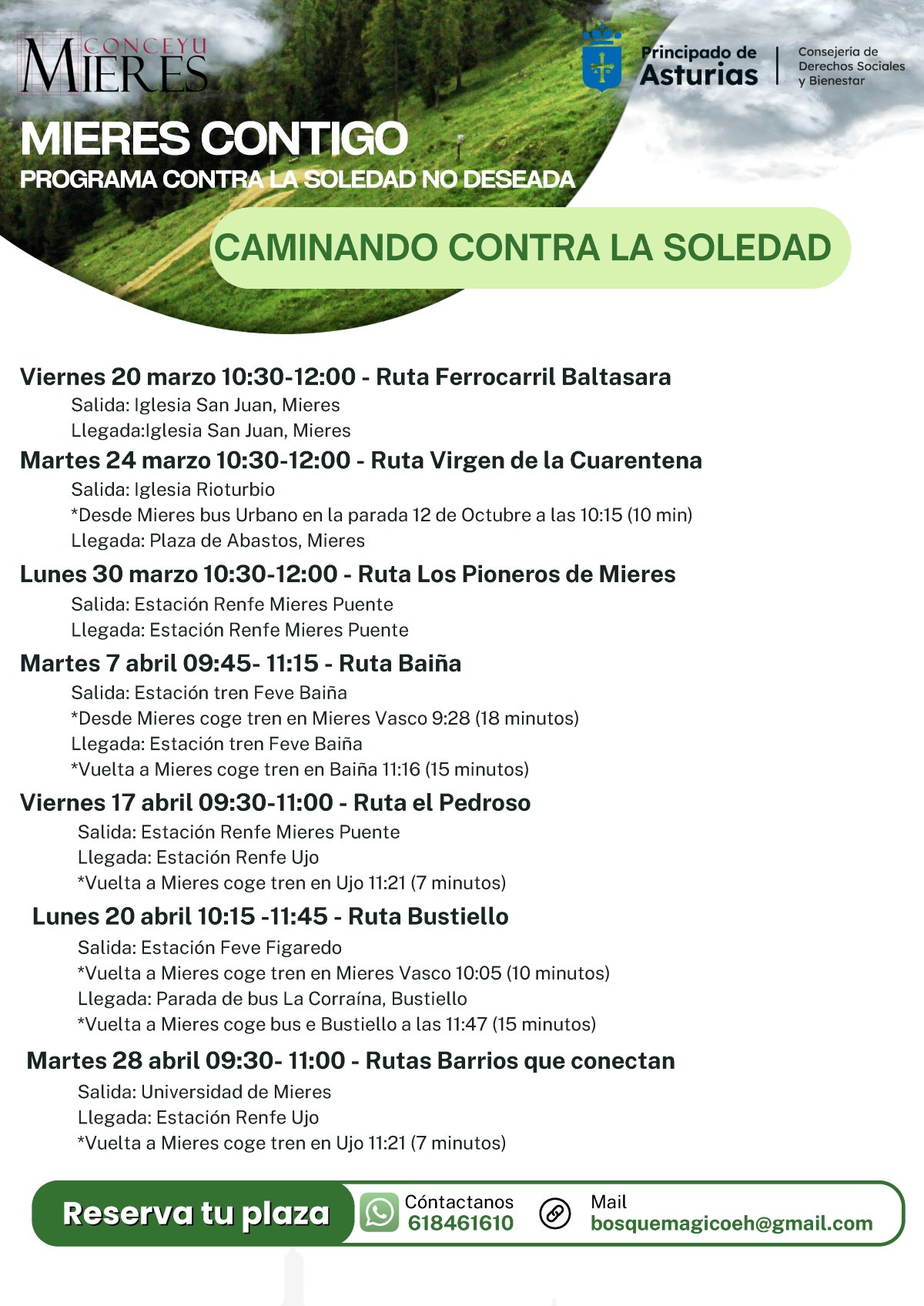 Rutas semanales por Mieres para caminar juntos, sentirse mejor y conocer a otras personas con las que compartir el camino.