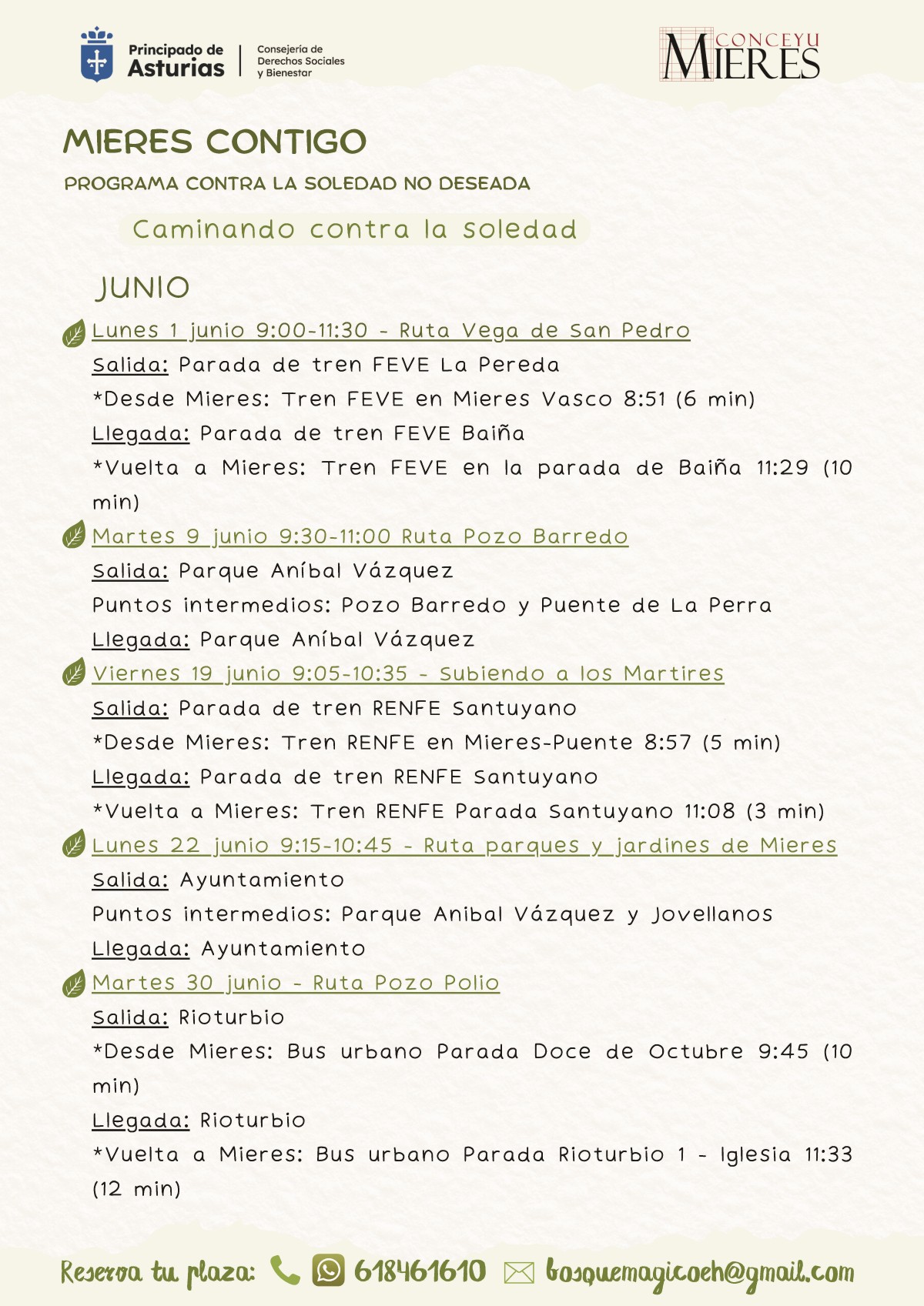 Programa “Mieres contigo”. Caminando contra la soledad: Ruta parques y jardines de Mieres