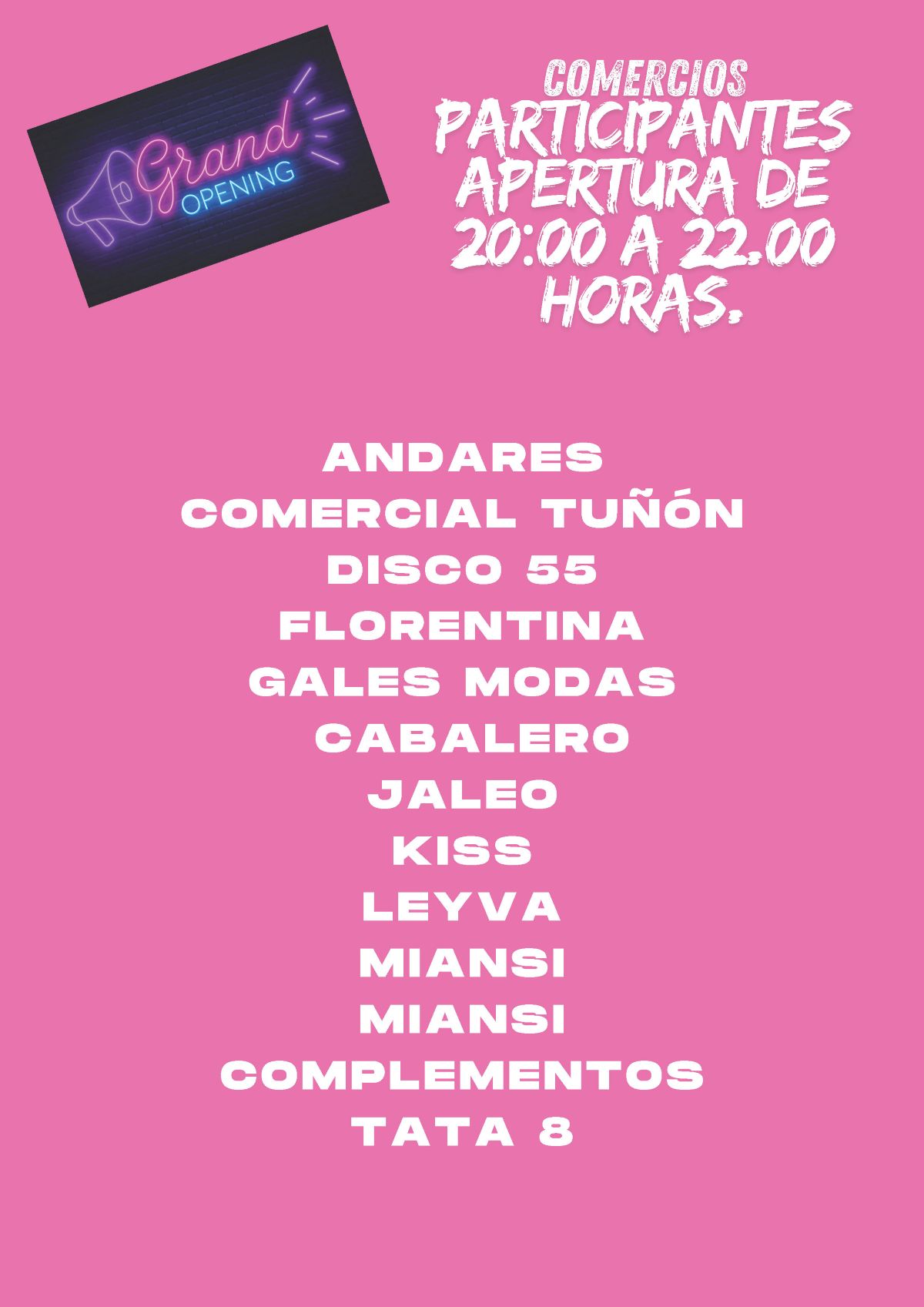 Apertura de tiendas de 20:00-22:00h.