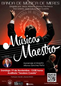 Concierto: Concierto de Santa Cecilia “Música Maestro” Banda de Música de Mieres Homenaje al Maestro Alfonso Sánchez Peña (Catedrático, Compositor y Director) Director: Jesús Alberto Alonso Pacheco Con la participación de: Voz Solista: José Luis Suárez Cuesta Con la colaboración del Bandín de Mieres y la Banda Municipal de la Escuela de Música “María […]