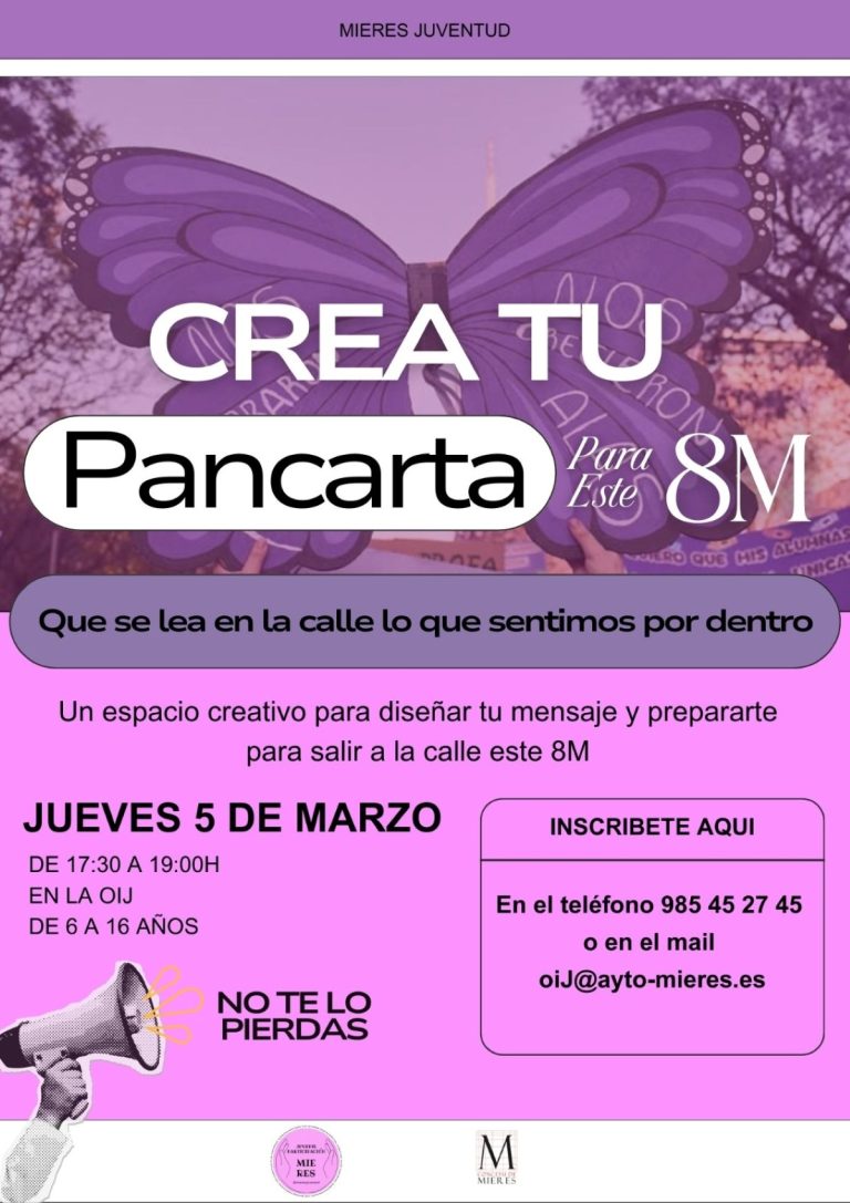 Taller de participación: "Crea tu pancarta para este 8M". Grupo de Participación Juvenil de Mieres