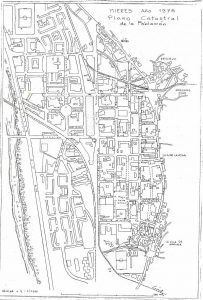Los núcleos fundacionales de Mieres están dibujados a escala 1:500 en el plano municipal de 1897, posiblemente relacionado con la promulgación de La Ley (1895) y Reglamento para el Saneamiento y Mejora de las poblaciones (1896) y contemporáneo del proyecto que proponía represar el río para formar un lago manso y tranquilo.