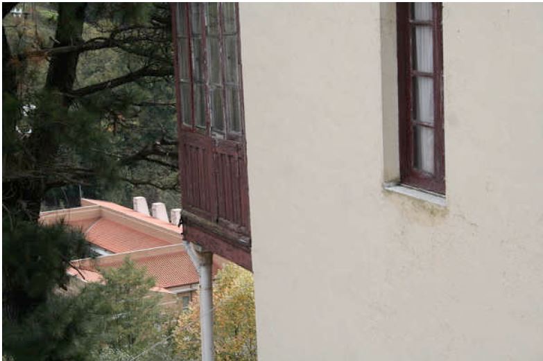 En estas dos fachadas los muros se abren mediante vanos de arco rebajado, en forma de puertas en la planta baja y como balcones de corto vuelo sobre repisa de fábrica en el primer piso. En la fachada principal, el alero descansa sobre consolas entre las que se disponen metopas cajeadas. La bajo cubierta se ilumina a través de vanos bíforos en un piñón, y ventanucos a hueso en el costado opuesto, sin tratamiento estético.