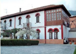 En la trasera, galerías acristaladas. La antigua casa-cuartel es un edificio que destaca por su volumen y ornamentación; de planta cuadrada, levanta bajo, dos pisos y un altillo abuhardillado. A la fachada principal se adosa un cuerpo, macizo en el bajo, que se organiza con una galería acristalada de dos alturas, que remata en una terraza. En el frente hay un jardín, que se extiende por el lateral este y en la trasera se convierte en un patio.
